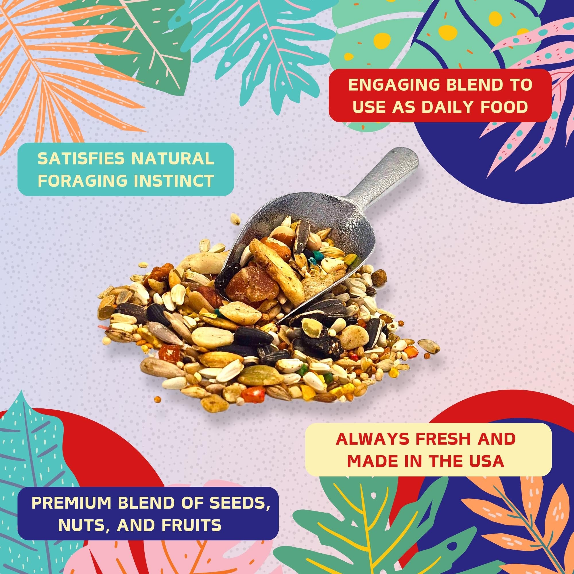 Versatile Seed Mix for Multiple Species: Suitable for African Greys, Senegals, and Conures, this premium blend also doubles as bird food for feeders, ensuring your feathered companions are well-fed and satisfied.