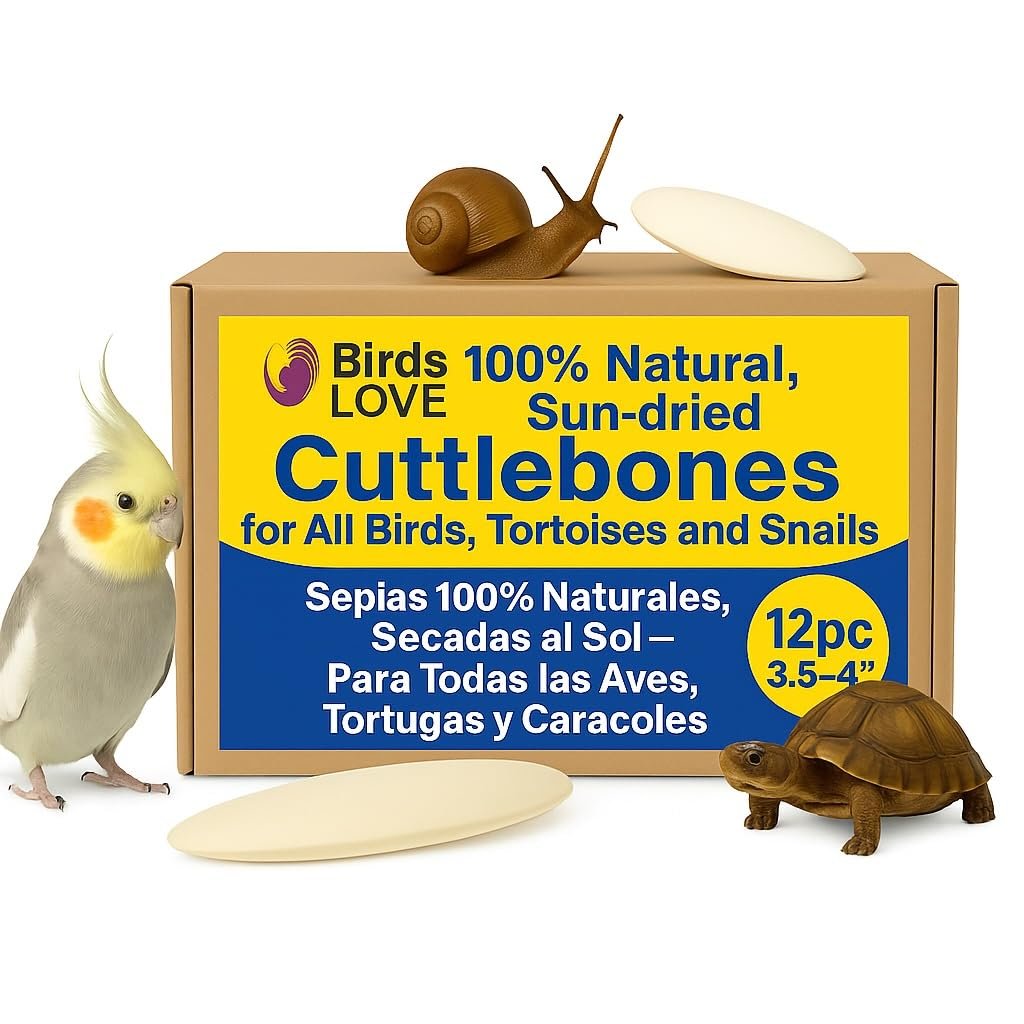 Birds LOVE Natural Cuttlebone – Premium Calcium & Trace Mineral Supplement for Avian Species, Tortoises, and Snails – Pure Cuttlebone for Parakeets and All Birds - 12 Pack, Size 3.5 to 4"