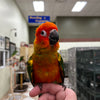 Red factor Sun Conures are completely red when born. The bright reddish appearance is on their whole head, belly, chest, upper wings, and legs which gives them the name of ‘red factor’. This color mutation is very rare and the bright red color develops more intensely as the baby gets older.