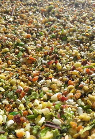 Natures Garden Medium blend is also one of our premium, top of the line blends. Its perfect for all medium sized hookbills. These include cockatiels, small quakers, conures and ring necks. It's a hand blended mix ofnuts, fruit, vegetables and some seeds and grains sized for your medium bird.